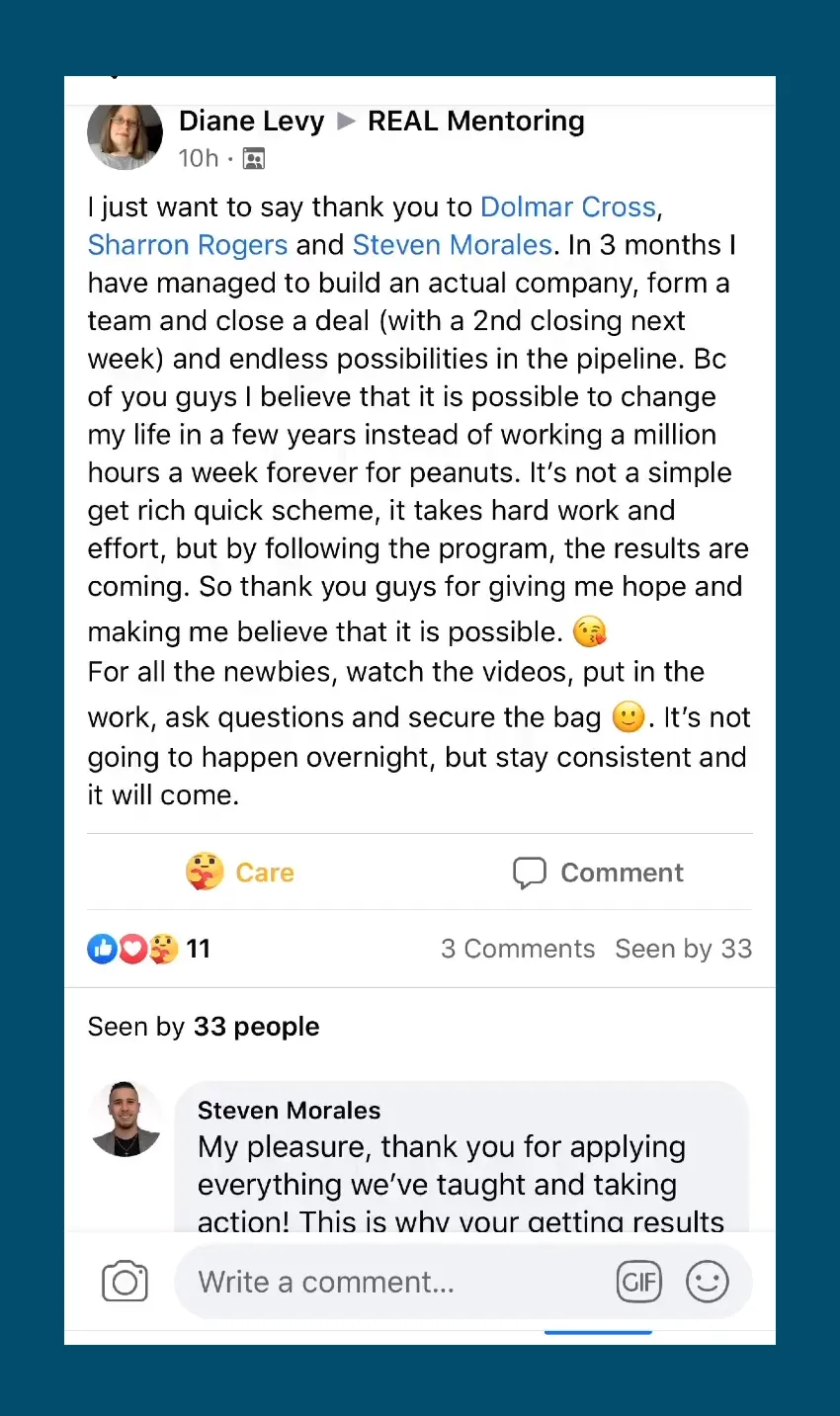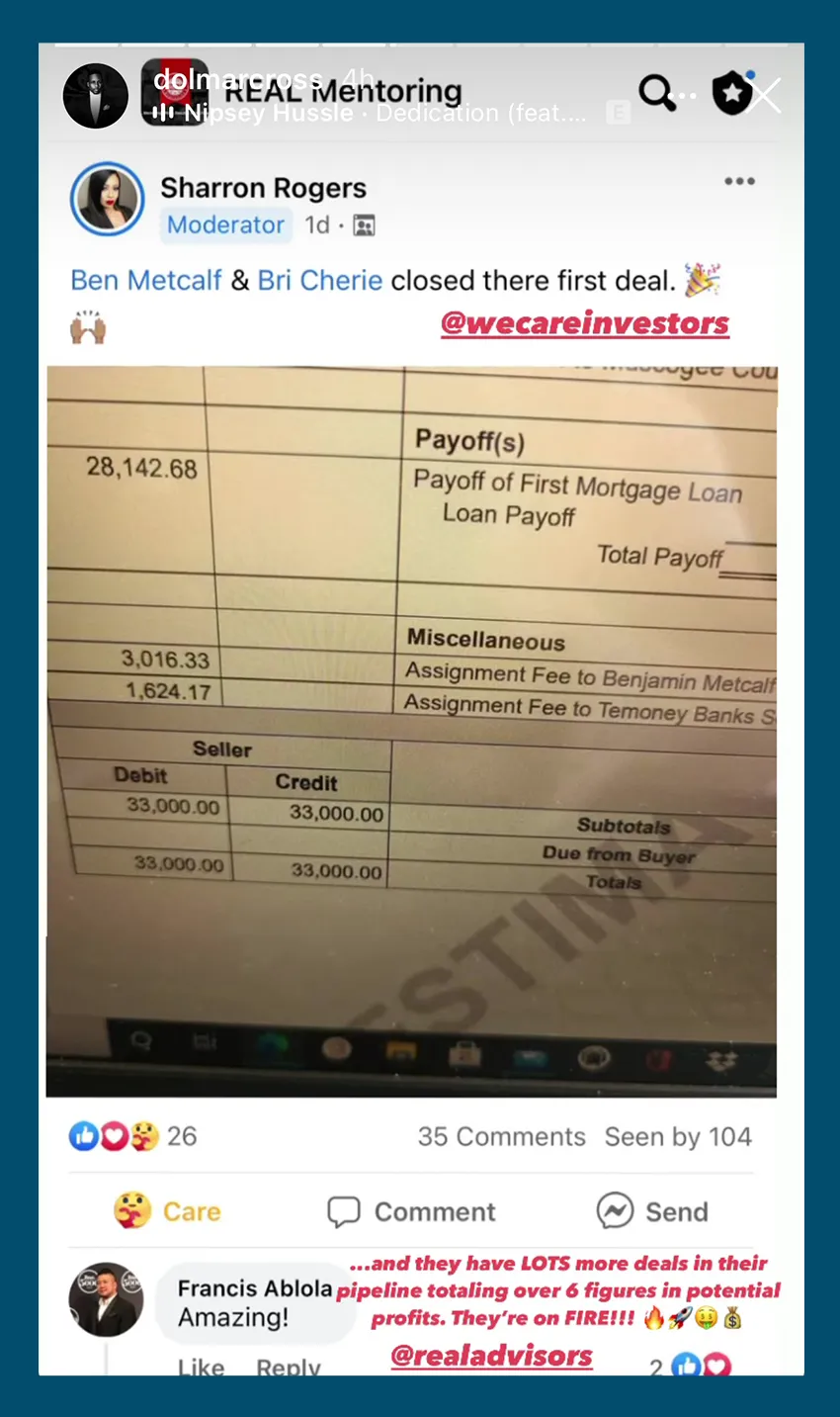 Any income or earnings statements are estimates of income potential only, and there is no assurance that your earnings will match the figures we present. Your reliance on the figures we present is at your own risk. Any income or earnings depicted are NOT to be interpreted as common, typical, expected, or normal for the average student. This particular result may be exceptional, and the variables that impact results are so numerous and sometimes uncontrollable, that Real Advisors makes no guarantees as to your income or earnings of any kind, at any time.